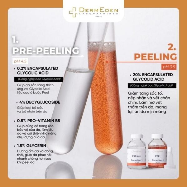 Công dụng của sản phẩm DermEden Advanced Peel: Tinh chất trước thay da (Pre-Peel) và Tinh chất thay da (Peel)
