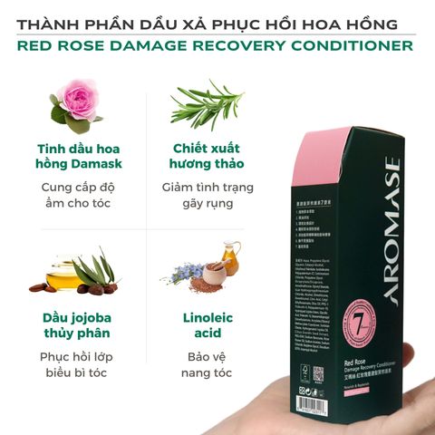 Aromase Red Rose Damage Recovery Conditioner là dòng dầu xả cao cấp đến từ Đài Loan, được thiết kế chuyên biệt cho tóc khô xơ, hư tổn và dễ gãy rụng. Với chiết xuất tinh dầu hoa hồng Damask cao cấp kết hợp cùng phức hợp dưỡng chất thực vật, sản phẩm không chỉ cấp ẩm tức thì mà còn nuôi dưỡng, phục hồi và bảo vệ sợi tóc từ bên trong.