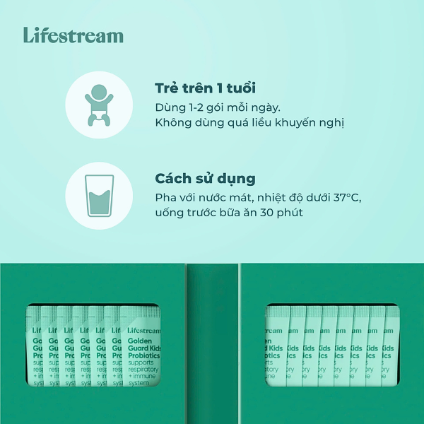 Men vi sinh Lifestream Golden Guard Kids Probiotic hỗ trợ tiêu hóa và hô hấp cho bé