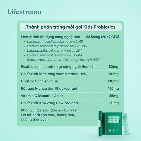 Trong mỗi gói men vi sinh Lifestream Golden Guard Kids cung cấp: