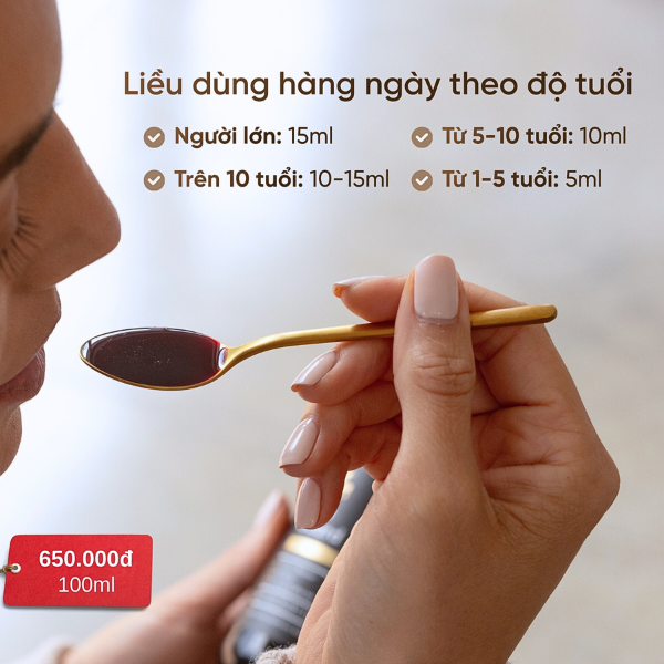- Dạng si-rô tiện dùng, hương vị dễ chịu, thích hợp với cả người khó uống viên sắt.